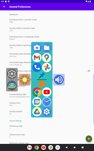 Easy Slider allows performing swipe actions on selected side of the screen. It displays an overlay over other apps, which is always available when the screen is unlocked (except while some system apps which display over of the overlay are open in the foreground).