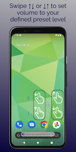 - (New in 2.70) Swipe up followed by down, or down followed by up to set volume to your defined preset level
