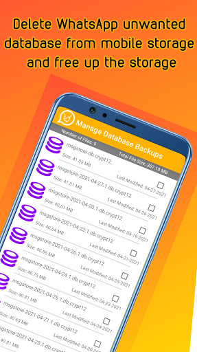 File manager for Whatsapp allows you to delete old media files which you have received or sent through Whatsapp, making it easy for you to free up some of the used storage space by deleting old multimedia files which you don't need anymore.