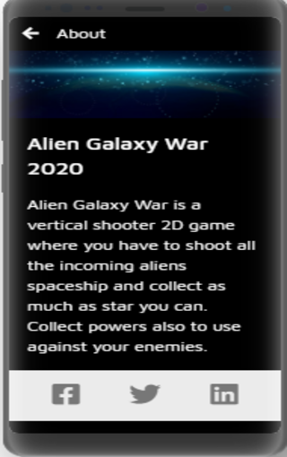 Alien Galaxy War is a vertical shooter 2D game where you have to shoot all the incoming aliens spaceship and collect as much as star you can.