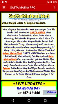 Satta Matka? Want to know live Satta results for Kalyan Milan Main Rajdhani Time Matka Market? Try our top Satta Market app - kalyanmatkafix.com Satta Matka Kalyan to not only know live Satta Matka results but also to guess Satta results and learn Satta Matka tips. While guessing the Satta results, you could become a top guesser of the game.