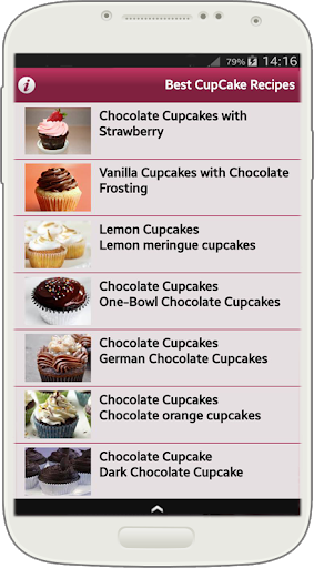 Best CupCake Recipes is an application that shows step by step and very easy to develop a dozen recipes for favorites small cakes, lemon, oreo, chocolate, light cream for Valentine's Day, hazelnuts, etc. .,. A recipe of the most creative and delicious .. Best Cupcake Recipes Around, Red Velvet, Lemon-Scented Blueberry, Chocolate Chip Angel with Fluffy Frostingn, Double-Chocolate, Vanilla Bean Frosting ...