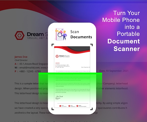 ✔️ Scanner for your documents that quickly scans, converts & saves the documents into PDF/JPG file.