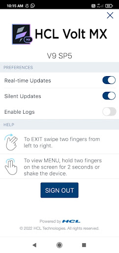 The HCL Volt MX app is the companion mobile app to the Volt MX cloud and enables users to utilize and manage a set of capabilities related to Volt MX Iris and Foundry including: