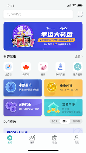 The built-in Web3 browser allows you to access dozens of decentralized applications such as BTC, ETH, EOS, TRON, BSC, HECO, etc. You can access the latest and most popular Dapp applications directly in your wallet.