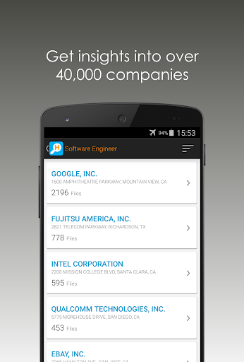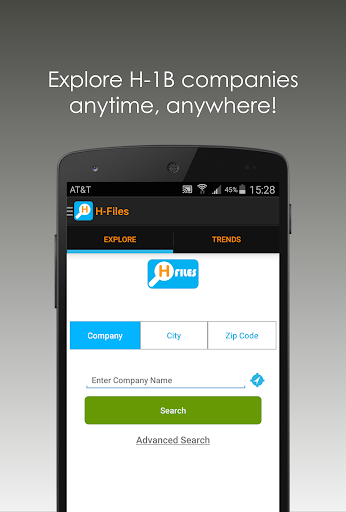 The H-Files app makes it easy for you to lookup companies who have sponsored H-1B jobs in the past - anywhere, anytime.