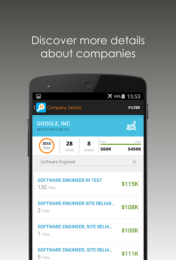 * Get insights into companies, including popularity, salary range etc.