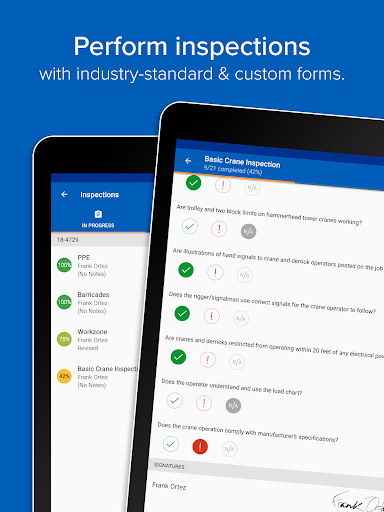 : Hold meetings, record attendance, and capture digital signatures. Use our library of 1,000 templates influenced by OSHA, the AGC, DOD, and Army Corps of Engineers, or access your company’s custom-built templates.