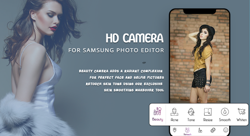 ‘ HD Camera for samsung : Blur camera for samsung’ is a dual watermark stamp app to add ‘Shot On’ & ‘Shot By’ watermark tags on photos with logo on top or left of text.