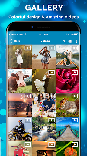 the gallery view has all of your photos and videos in one slick gallery view and photo viewer, photo gallery with smooth user interface.