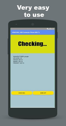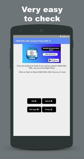 HDMI MHL application it's an easy way to check any device that has support MHL (HDMI) connection or not to help you cast phone screen to the TV. and to make your Android phone the second screen of your usb or any other device briefly Display Phone Screen to watch Movie and football or any thing.