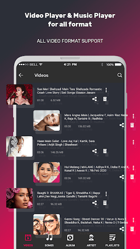 👉play video like music in single one tab. you can listen music from video like any music player using our video player app.