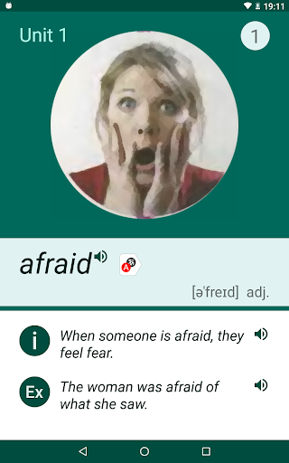 “Word Memorizing” trains your brain. Using the app, you have an opportunity to improve your reading and listening skills. Each unit ends with a story containing the target words. You can read this story or listen to it. While doing it, learners have to recall the meanings of the words and suit them to the context of the story. Such activities help learners develop a better understanding of a common meaning for a given word which fits the different uses.