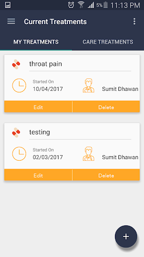 Use the app to better mange your treatments! Get reminded of each medicine dose and track your adherence as well. Link up directly with your doctors and have them visualize all your treatments, adherence score and medication history on their portal. Receive prescriptions directly from the doctor's dashboard to the application. Have them monitor your treatment progress and body vitals also.