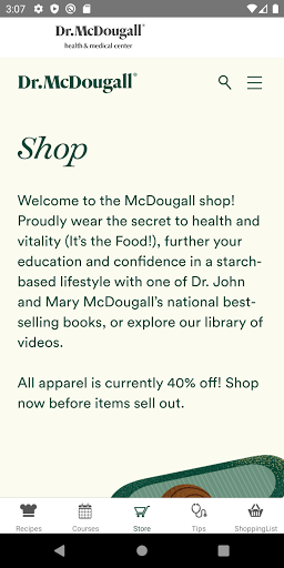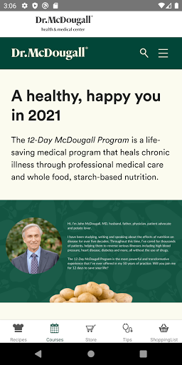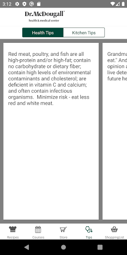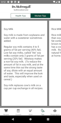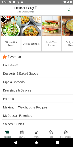 McDougall Cookbook on Android has been completely redesigned! Discover over 1,000 healthful and delicious McDougall recipes. Among the helpful tools are a Search feature, Shopping List, Favorites list, and Print capability. The app features valuable health and kitchen tips, information on upcoming McDougall courses.