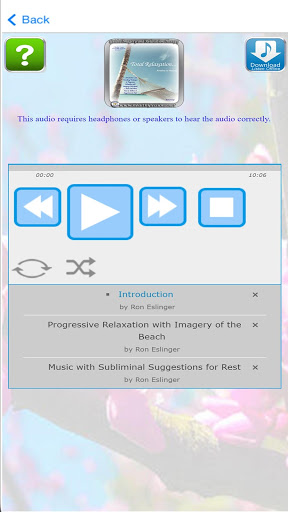 Included is a biorhythmic, stress reducing musical background with an underlying alpha tone for relaxation and subliminal suggestions to help you feel relaxed, calm and at peace.