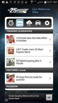 Know what to wear or if you need an umbrella by checking the current weather conditions, today's forecast and live Doppler radar, powered by WPBF 25 First Alert Weather. Severe weather alerts for your neighborhood are right at your fingertips. Tap on Traffic to prepare for the morning commute. Get up to speed by scanning South Florida's top trending headlines, videos and slideshows. Plus, see what your friends have shared on Facebook.