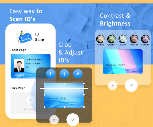 👉 ID / Passport Photo Scan : You can scan any sort of ID's and/or photos and capture front as well as back image and save it on your device in the form of image and/or PDF.