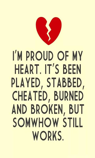 Broken Heart is strange and painful. Its a strange because everything has a brilliant start. You can pinpoint the point where you let them reach into your chest cavity and take your heart nothing good gets away. You flew off with the wings of my heart and left me flightless. Ask me why I keep on loving you when it's clear that you don't feel the same way for me... the problem is that as much as I can't force you to love me, I can't force myself to stop loving you. One day you'll love me as I love you.Sad & Broken Heart Status is a Free App of Feeling Lonely Quotes inspirational collection about Sadness Feelings after Losing a Friend after love break up to help you find comfort when all you feel is pain through times of sorrow and unhappiness. There is nothing worse than being in love or friendship alone. Share broken heart quotes, sad love saying and express yourself.