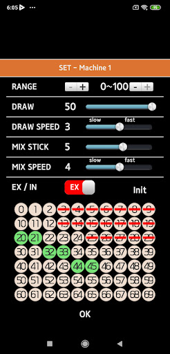 * double physics lottery machines running at the same time. * You can draw from 0 to 100(Pick up 50 balls). * You can exclude or include numbers and save settings. *Save option included.