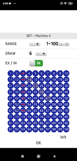 * 5 physics lottery machines running at the same time. * 2 machines(4th, 5th) draw from 1 to 100. * You can exclude or include numbers, and edit the lottery range.