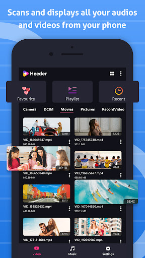 Heeder: Video & Audio Player can play all video formats including 4K ultra HD video files with high definition. It is the best video player that fulfills all your media player needs and an attractive user Interface gives you the best user experience.
