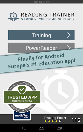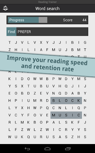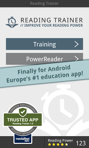 Reading Trainer improves your reading speed and retention rate with 12 challenging and fun exercises. The popular speed reading app is finally available on Android!