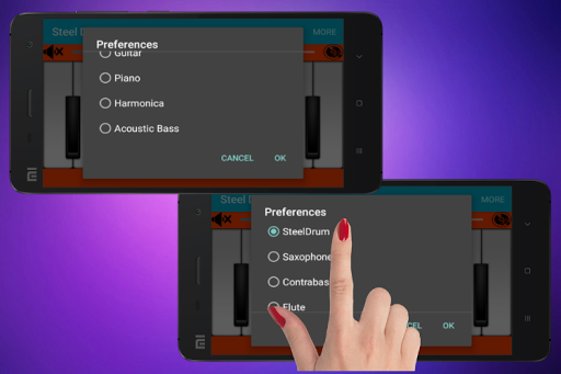 Guitar, piano, harmonica, flute, trumpet, cello and acoustic bass options are also available in the Preferences menu.
