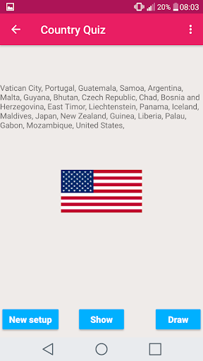 Draw a country flag. Choose if you want to simultanously show tha country name, or not, and make this a funny Quiz. You will be surprised about how few flags you actually knows. The country name are presented in English.