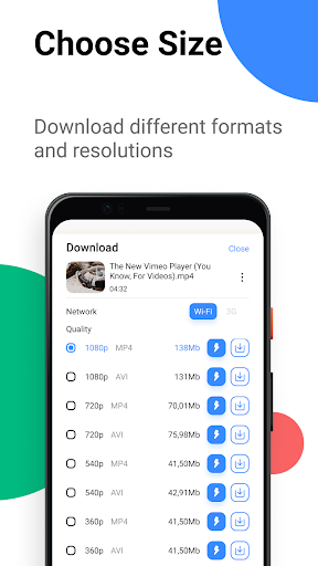 * Download videos via Wi-Fi and cellular network(2G, 3G, 4G)