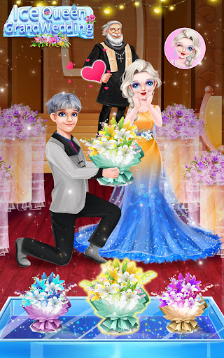 Beautiful Ice Princess will have a grand wedding with George Prince. Are you willing to help them have an unforgettable wedding?Then come to join us and let this couple have a nice wedding. Before the wedding, you need to thaw the frozen decorations of the princess. Three or more than three same shapes of the snowflakes together can be eliminated. Then try your best to make up for the ice princess. Make her look amazing as you can. Show us your design ability to help ice princess design a fashionable and unique wedding dress. When George Prince come to church, he met a heavy snow. You need to help princess find him and take back to the church. Dress up for the prince to let him look handsome. Let us see their wedding to be held under the godfather. They will vow and change their rings to show their faithfulness to the marriage. No matter what happened, they will not give up each other. At last, take a couple of nice pictures for their wedding to let them have a good memory.