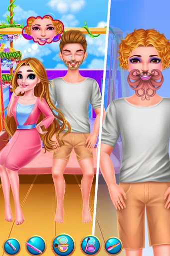 2. Give him makeup. Now pick up the makeup tools and give him eyebrows, eye shadow, lipstick, and blush. Then come and enjoy the beautiful girl together.