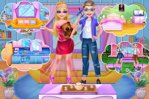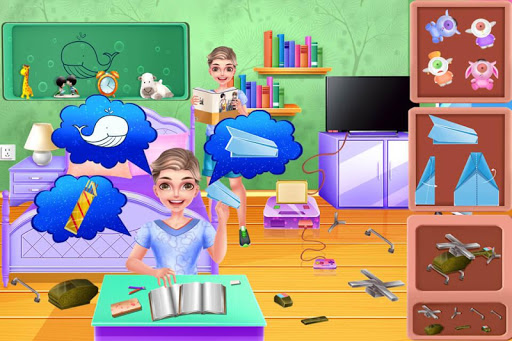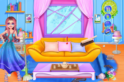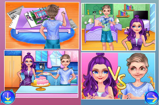 There is a sister and a brother in a family. They both are sort of naughty. If one is doing something, the other will interrupt. Every day, they compete with each other. Today,when one of them is in the living room, the other rocks the boat. The living room needs cleaning. While cleaning up,pay attention to the interruption by the other and take them back where they were before. After cleaning up the living room,one of them will practice the guitar in the bedroom. Then make a strawberry cake in the kitchen. Finally,get dressed and wear some decorations to take photos. Now let's have a look at their competition.