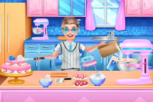 3.Make a strawberry cake in the kitchen with some eggs,flour,self-practice cream and milk as well as strawberries. Pay attention to the interruption.