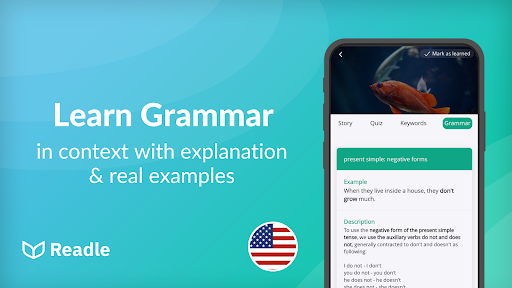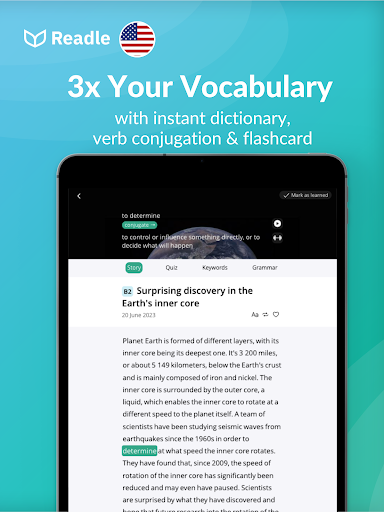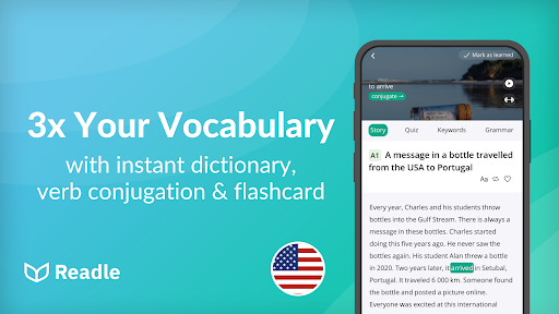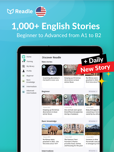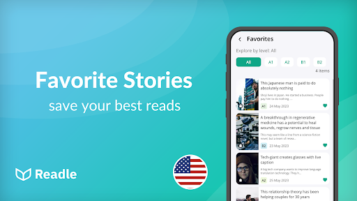 Readle is a language learning app with real-world news & stories. It is the world's first CEFR-graded reader to help you learn American English. Easily read & listen to news & stories anytime, anywhere – Take 5 minutes a day to learn English.