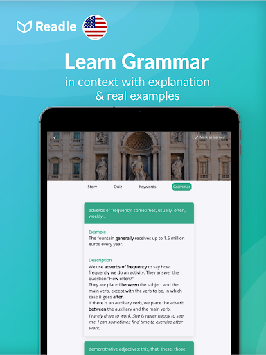1000 interesting stories & news for you to learn English. Readle allows you to learn them effectively in context, including grammar tips and vocabulary flashcard training.