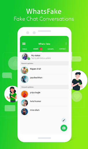 Fake Chat lets you create realistic mocks of chat conversations and share it with your friends. Create Whats Prank contacts and conversation and have fun with your friends and family.