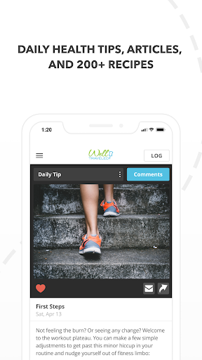 Note: Well Traveled syncs with the web version through your organization’s wellness program; you must create your account on the web version before you can use the mobile app.