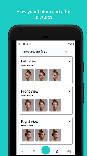 - View isolated albums of specific sides of your face (left, center, right), timestamped and ordered chronologically or reverse chronologically
