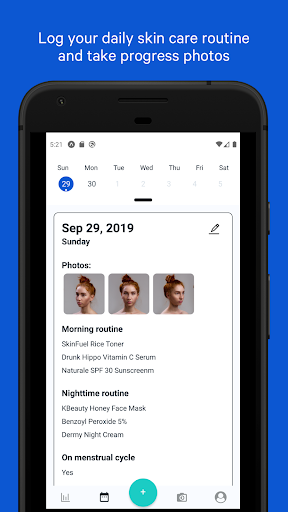 Track your skin progress and discover what products, supplements, diet, and makeup products actually work for you. Upload or snap progress photos in-app and document your skin progress daily to track down which beauty products you should keep and which ones are causing you harm.