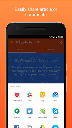 ◦ Easily share article or comments