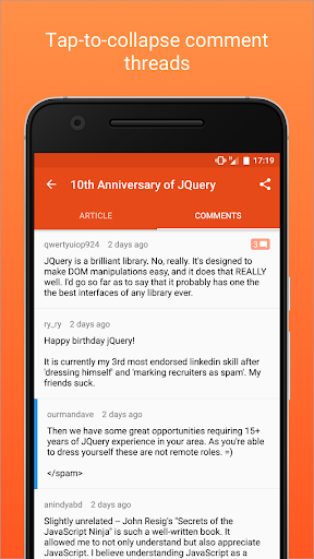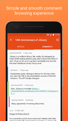◦ Easily swipe between article and comments