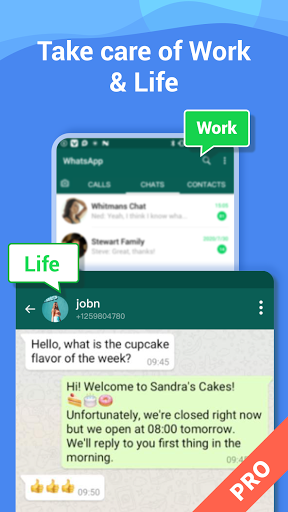 · Using 2Space Pro’s application cloning function, you can clone a second WhatsApp dedicated to logging in to your WhatsApp work account in the second space to communicate with colleagues.