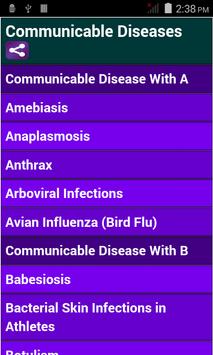Completely Offline & FREE Communicable Diseases app containing medical disorders & diseases with detailed definitions, symptoms, causes and treatment information.