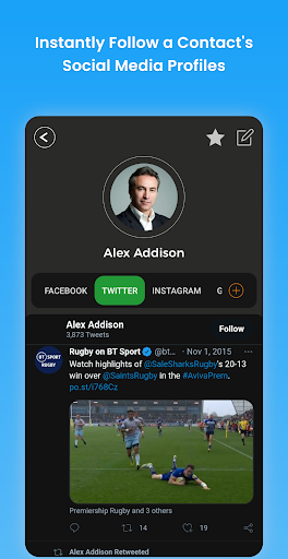 - Pick a contact and check their Facebook, Instagram, Twitter, and Gmail posts in one place