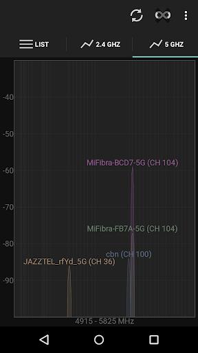 Muestra los canales Wi-Fi a tu alrededor. Te ayuda a encontrar un canal con menos gente de tu router inalámbrico.