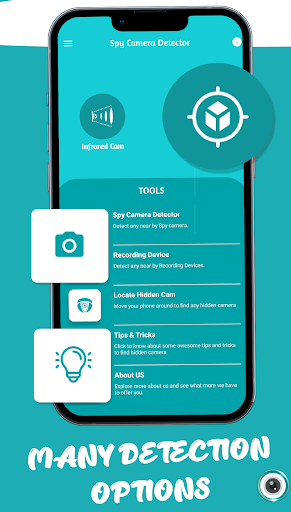 The hidden camera detector app and spy devices detector app allows you to detect spy microphone, spy bug, and hidden bug in your surroundings by using a camera detector feature also spy camera detector and hidden camera detector app or by sensing the magnetic field of the electronic device.