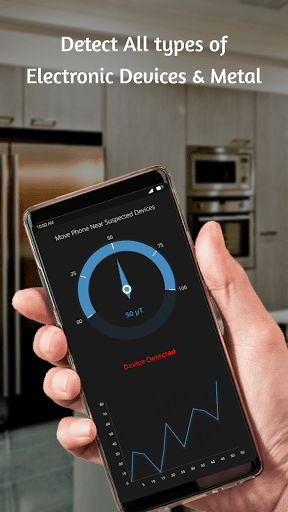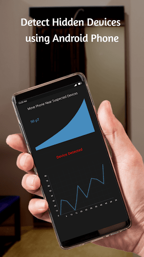 - As your device come in contact with hidden cameras, graph will show changes and give magnetic induction value in microtesla (?T).