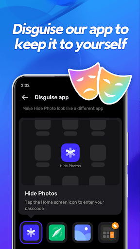 2. Disguise app iconIf you don't want other people seeing "Hide Photos", you can change the app icon in Settings. On your Home screen, it will display as a Calculator app -- only you will know it's a secret photo vault.