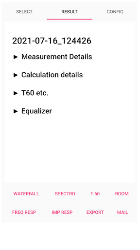 - Export of measurement data: Impulse response accessible as .wav file and measured values in CSV and .FRD format.